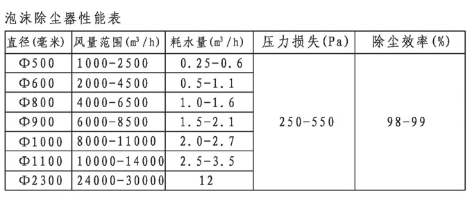 (1)泡沫除塵器外形尺寸表