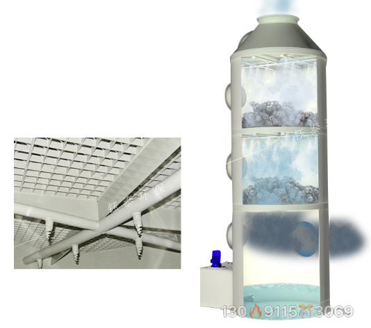 廢氣噴淋凈化塔的工作原理是將氣體中的污染物分離成無害物質(zhì),以達到凈化氣體的目的,屬于差動接觸逆流,塔體填料是氣液接觸的基本組成部分。進入塔體的氣體進入塔體后,氣體進入填料層